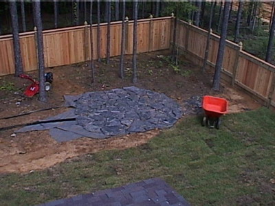 view of a back yard landscape taken by a Mississippi new home inspector while inspecting the roof by walking on the roof.